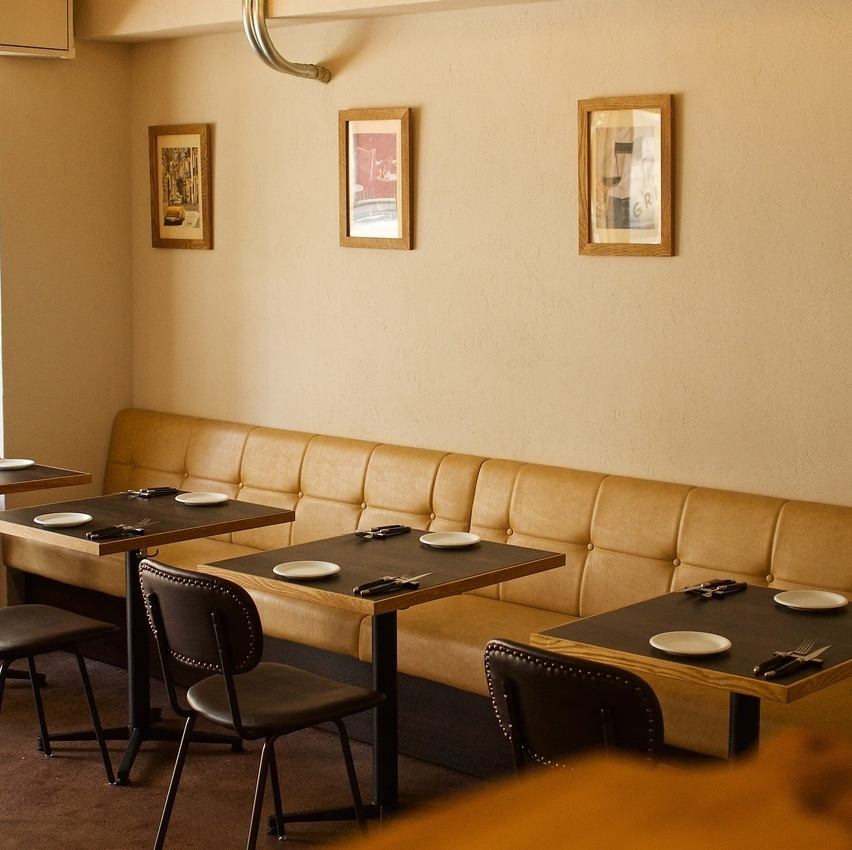 【普段使いや結婚式の二次会にも◎】ワインを傾けながらリラックスして過ごせる、洋風のおしゃれな空間。全20席のテーブルは、すべて片側ソファー席となっており、ゆったりとお過ごしいただけます。ディナーは仕事終わりの一息やデート、ランチはご家族連れにも最適です。また、結婚式の二次会などの貸切利用も♪